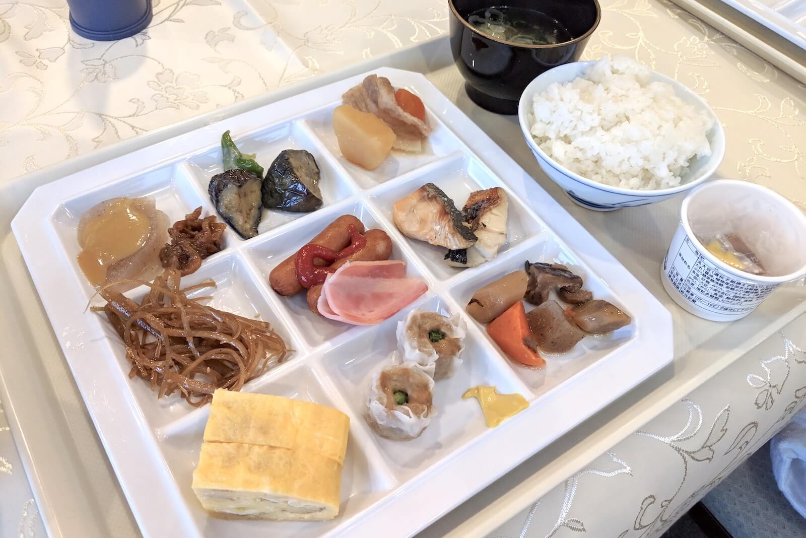 温泉と日の出を楽しんだらホテルに戻って朝食。バイキング形式。おかずの種類が豊富なのが嬉しい。