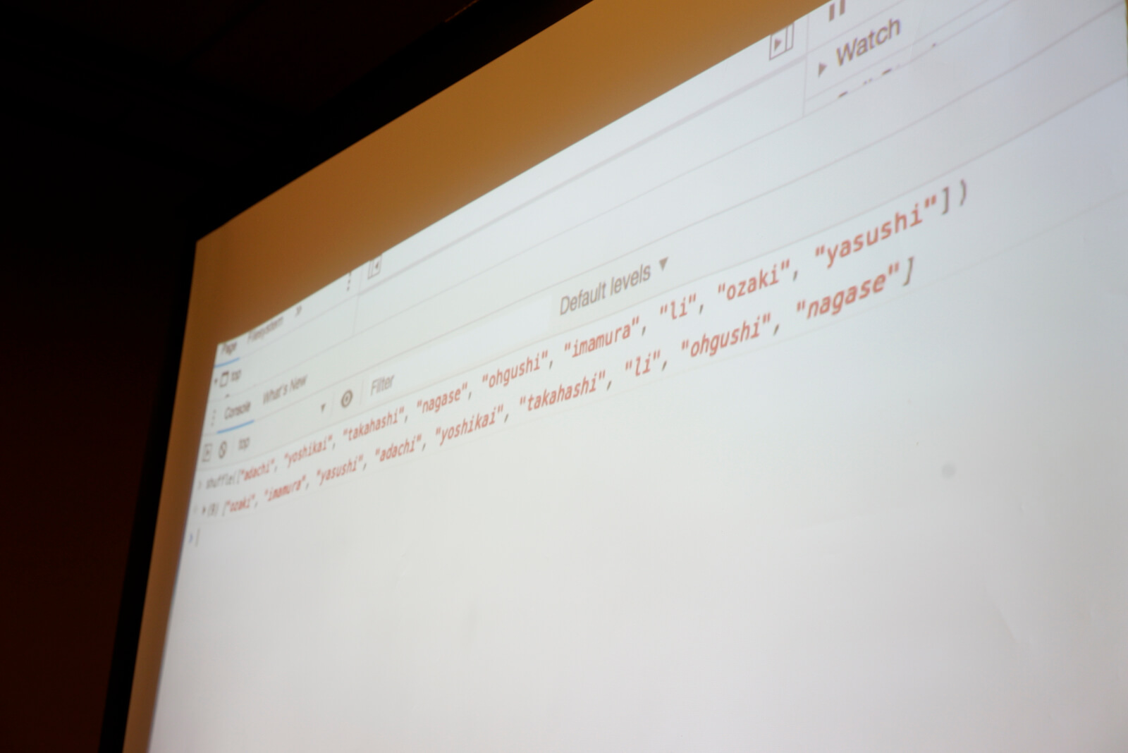 ホワイトボードがないので恒例の部屋割りアミダクジができない代わりに、「カブクすべらない勉強会」で発表順を決めているFisher–Yatesシャッフル関数を使って部屋割りと明日の発表順を決めます。