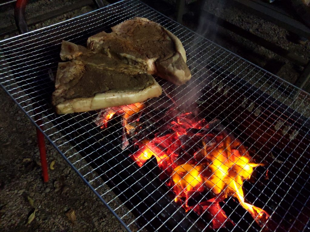 (※肉を愛する人が事前に低温調理で仕込んでおいたTボーンステーキを勝手に焼き始めてます)