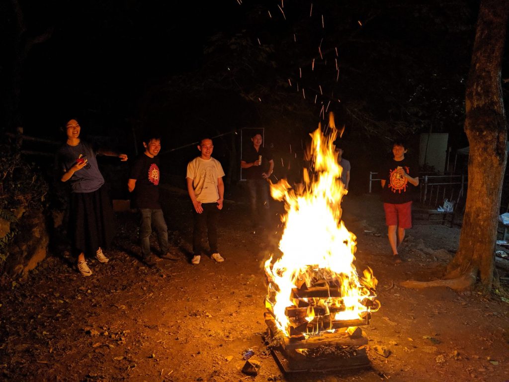 BBQを楽しみながら今回のメインイベント(?)、キャンプファイヤーで盛り上がり、ゆっくりと普段とは違う楽しい会話で懇親を深めることができました。