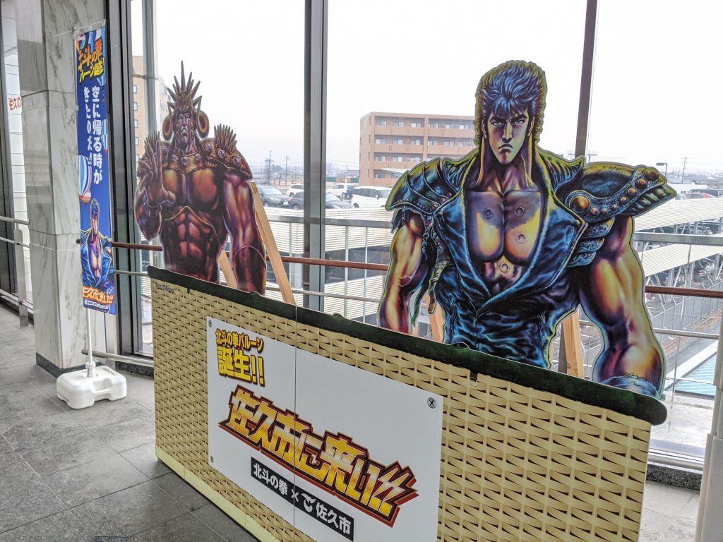 佐久平駅のある佐久市は北斗の拳の原作者、武論尊氏の故郷とのことで、北斗の拳35周年の色々を楽しめるようです。