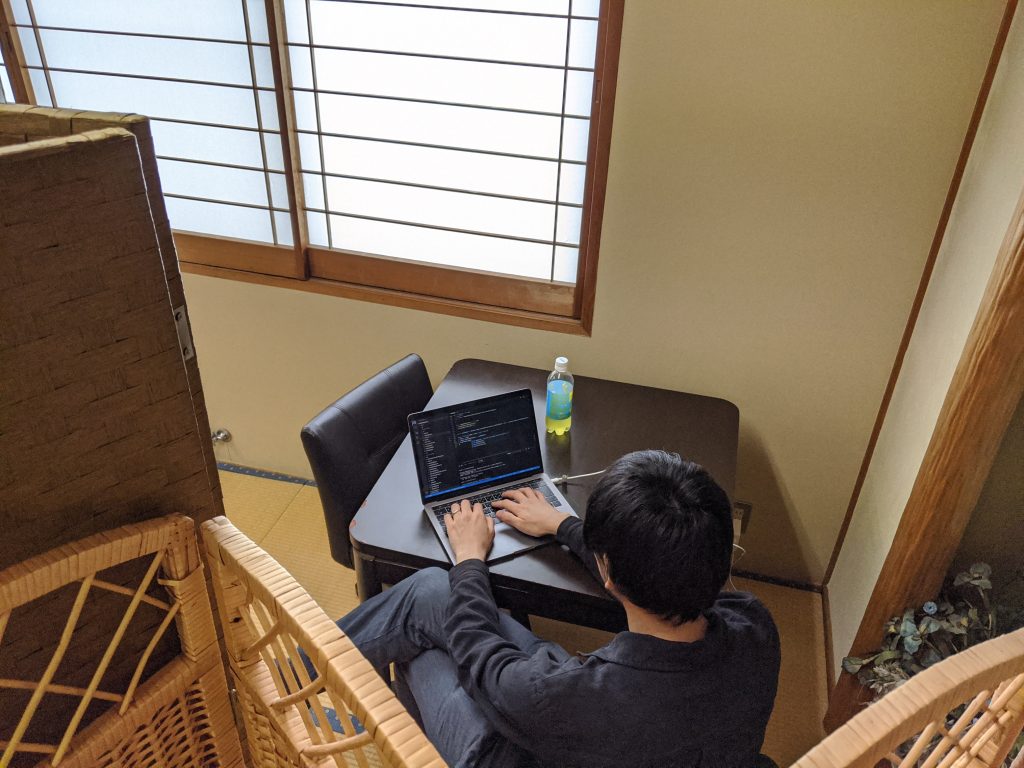 1日目の朝の開発時間を長くするため10時に現地入り、2日目午後に観光があるため7時起床にして、いつもと同じぐらいの開発時間を確保できました。