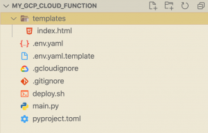 するとcookiecutterは{{ cookiecutter.project_slug }}フォルダーをコピーしてmy_gcp_cloud_functionという名前のディレクトリを作成します。