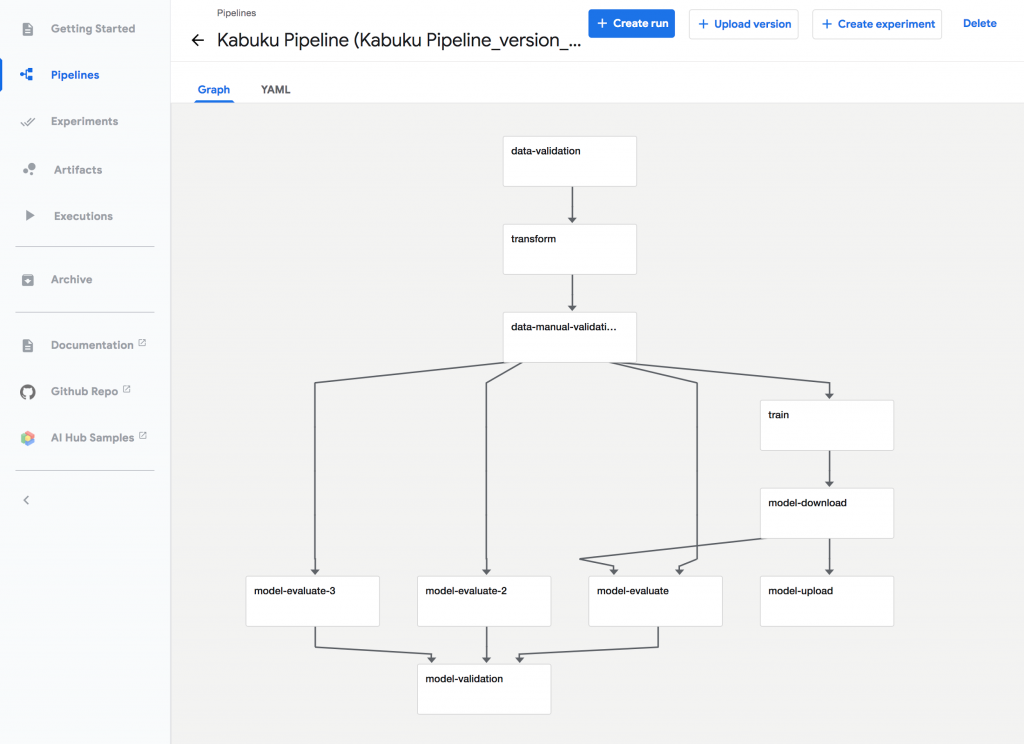 本機能はAIの実用化において重要であると言われている、MLワークフローを自動化するCloud AI Platform Pipelinesを活用し実現しています。