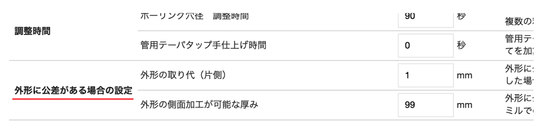 2.外形公差の加工を行う面のサイズによって、側面加工(エンドミル)から底面加工(フェイスミル)に自動で切り替わり、それに伴う段取り時間も考慮された加工原価を算出します。原価計算設定画面で、自動で切り替わる厚みを自社の設備に合わせて調整いただくことも可能です。