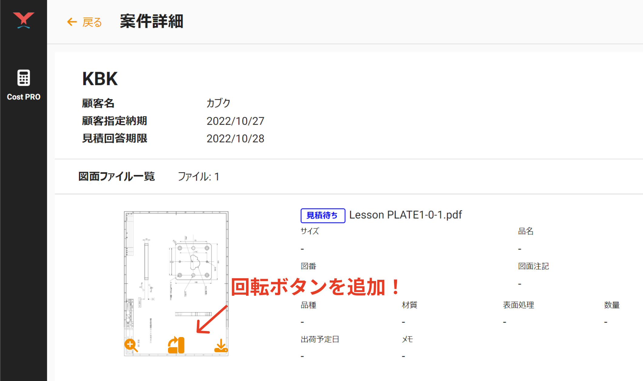 クラウド加工原価見積りサービス「Cost PRO(コストプロ)」にて、案件登録・管理をより簡単・便利にする「PDF回転機能」をリリース。